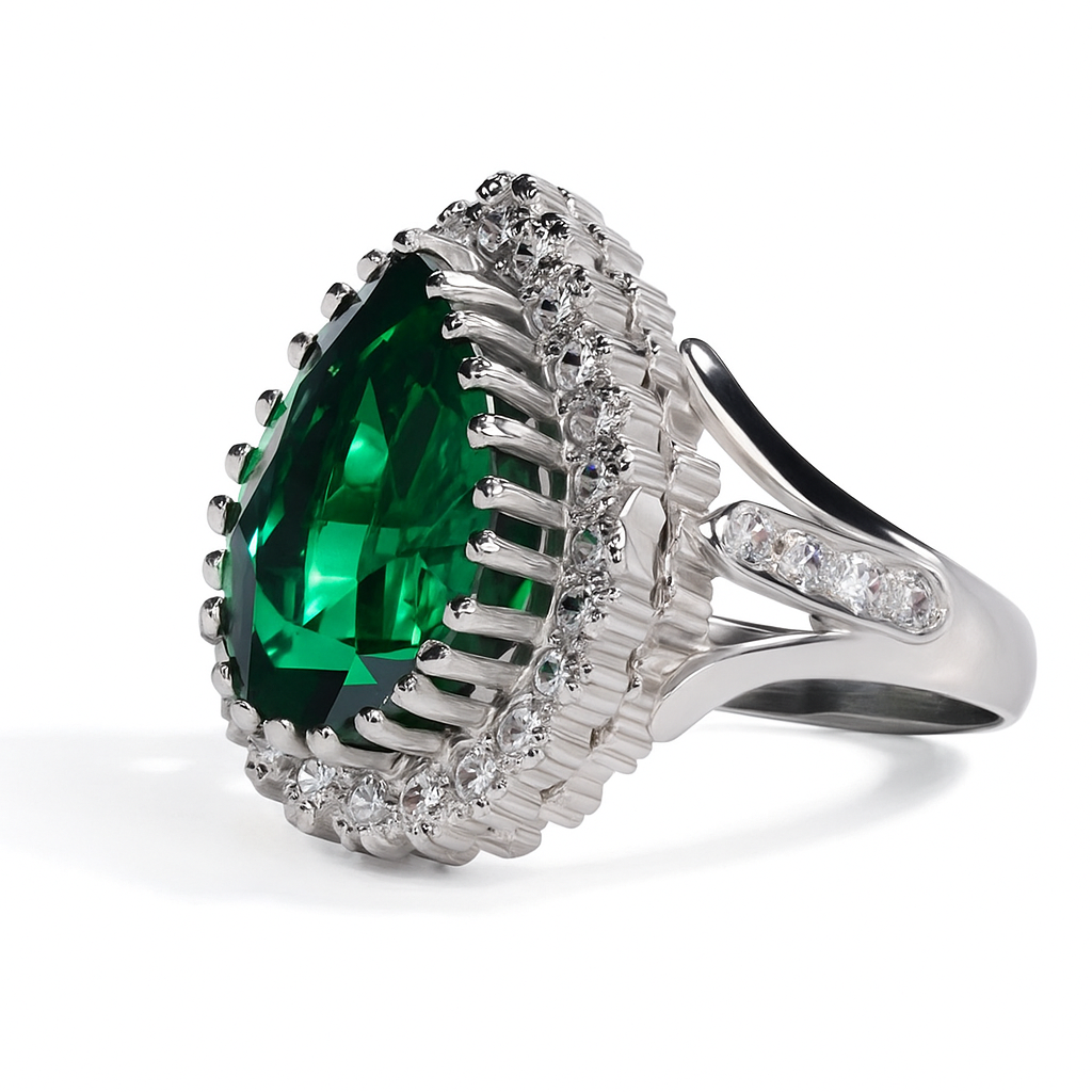 خاتم السلطانة هُيام | Emerald and Moissanite Diamond - زمرد أخضر والماس موزنايت