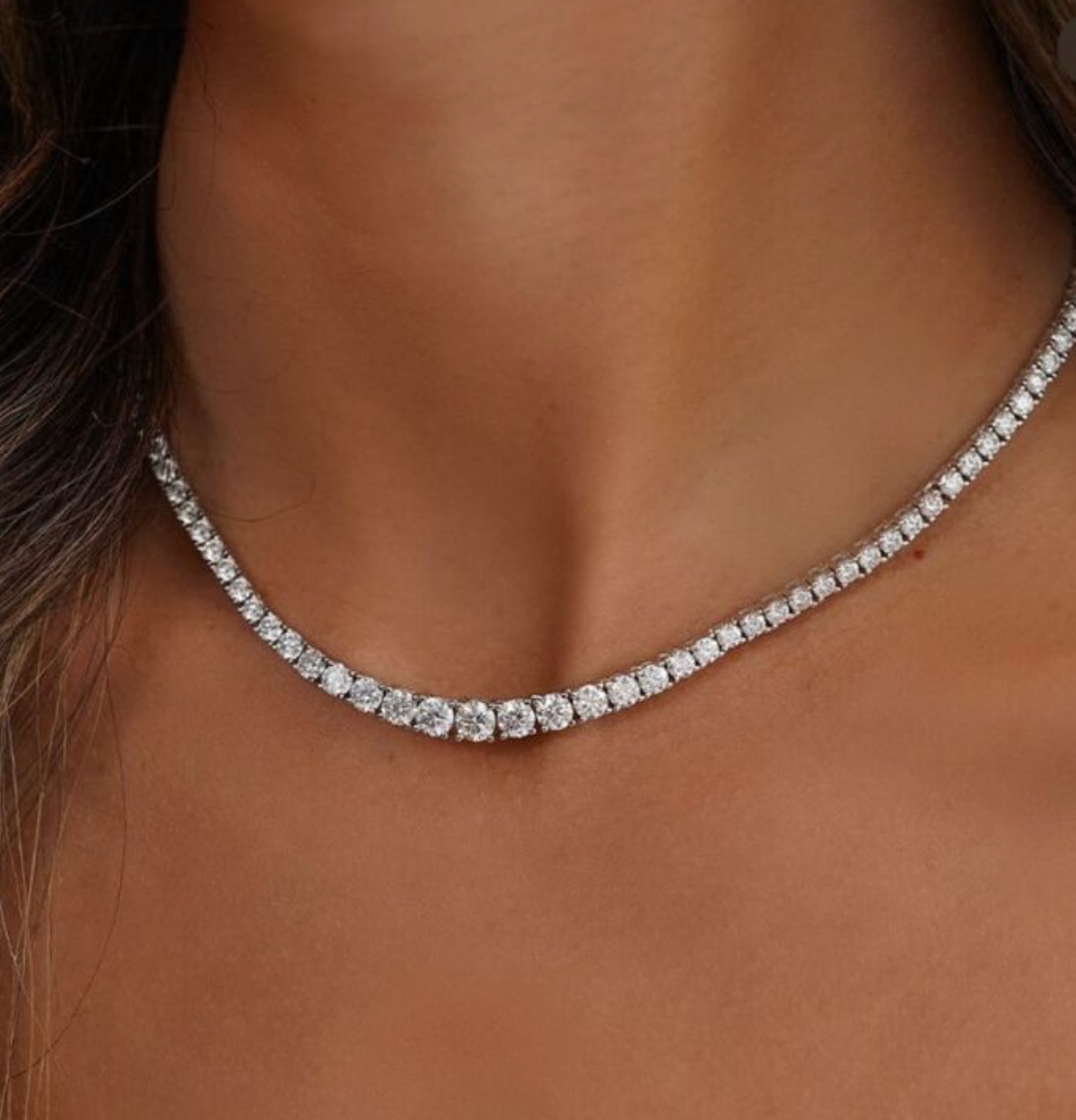 3-5 mm | Moissanite Diamond Tennis Necklace | مُتدرج في المقاس لحب الألماس | قلادة الماس الموزنايت تنس